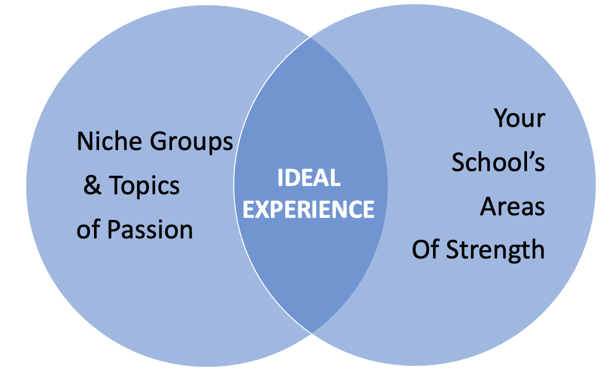 * Build relationships between applicants, students, or parents through niche topics of shared interests.